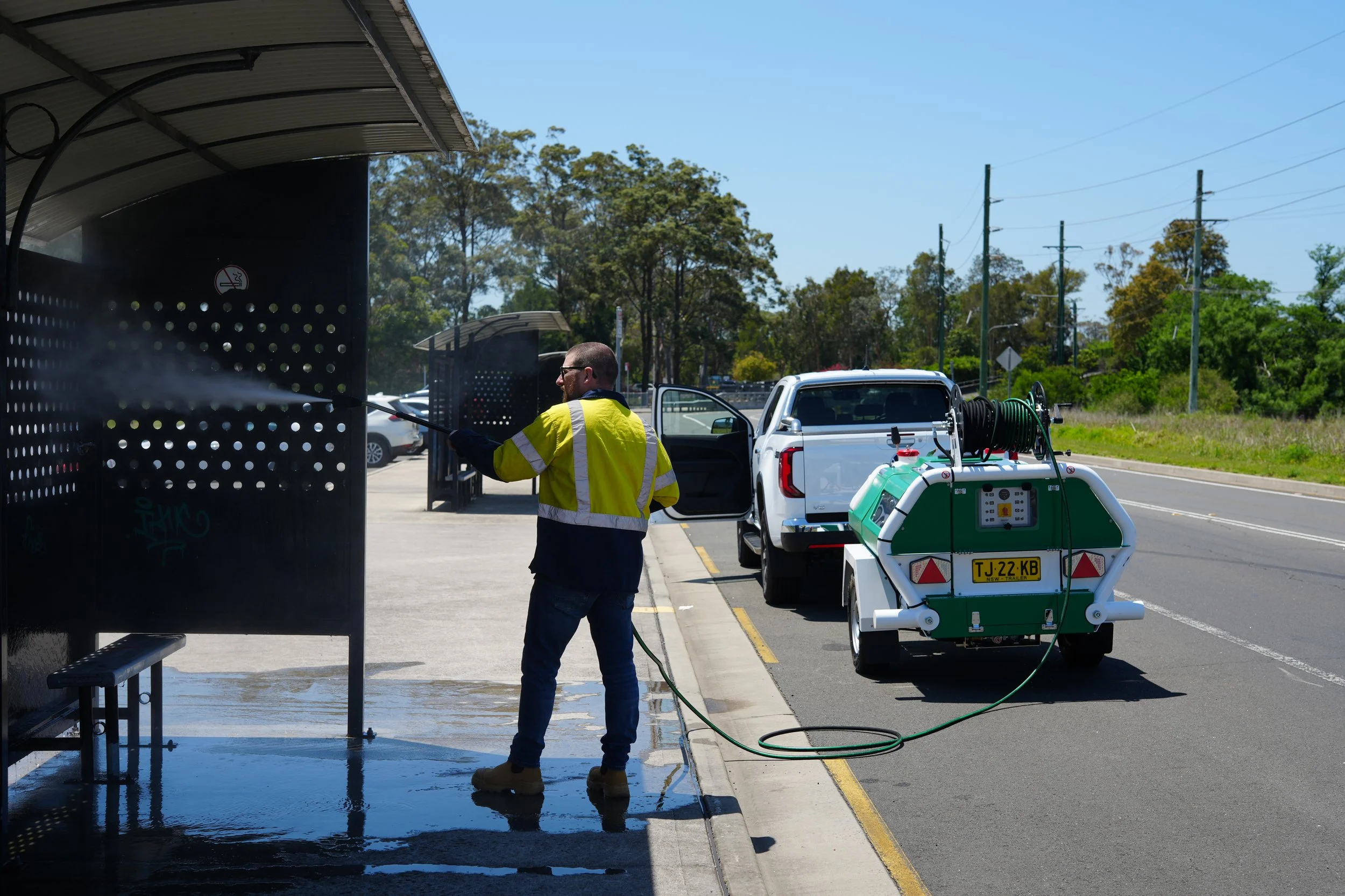 With no external power or water connection required, the trailer comes equipped with a 940L water tank, 28L detergent tank, and a 15L anti-freeze tank — perfect for mobile operations in remote or rugged areas.